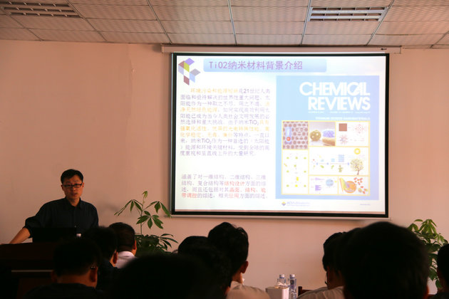 赖教授还阐述了TiO2纳米材料的表面改性技术,包括掺杂、量子点、异质结、复合半导体等,成功研制出多种结构新颖、性能优异的纳米TiO2光电催化电极材料。最后,赖教授介绍了超浸润材料表面液滴运动在能源环境领域里的应用,并介绍了TiO2纳米材料在生物医药、生物芯片及模板等方面的应用。