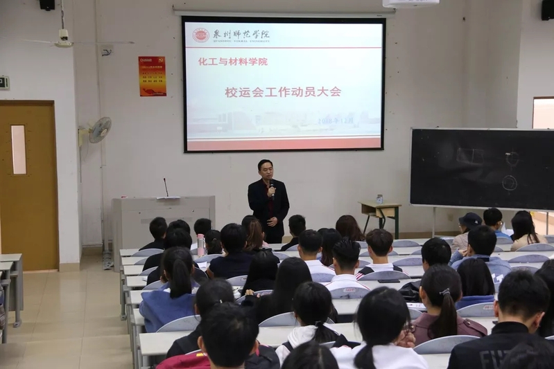 12月7日中午,化工与材料学院在理工楼319教室举行了第36届校运会动员大会。学院党委书记傅志雄、全体辅导员、三委会学生干部、全体运动员参加了动员大会。