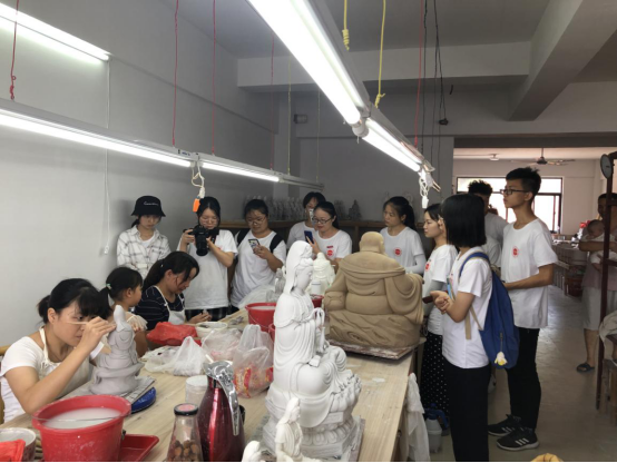 为弘扬中华民族传统文化,传承丝路精神,以实际行动庆祝新中国成立70周年,2019年8月20日-22日,我院“中国白”传统工艺与文化考察队在学院党委书记傅志雄的统筹策划和带领下,学院团委副书记陈伊玲、辅导员陈淑霞以及10名学生前往“世界陶瓷之都”——德化开展为期三天的暑期社会调研与实践。