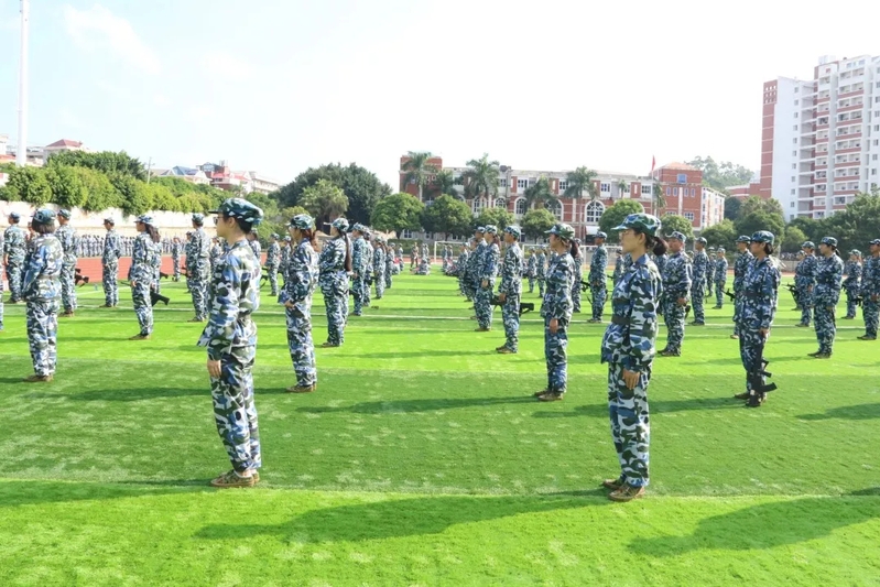 同学们脚步整齐而矫健,队列划一而自信,俨然已从一名象牙塔里的学生蜕变为训练场上挥洒汗水的战士!