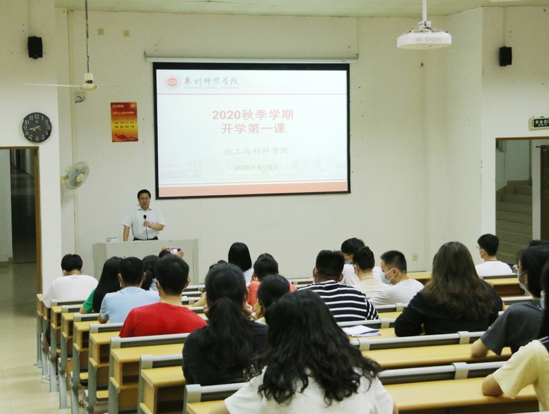 2020年9月6日晚,化工与材料学院在理工楼319教室分三场开展了“开学第一课”教育活动,院长袁俊生,党委书记傅志雄出席活动并分别为全体返校学生授课。学工办全体辅导员参加活动。