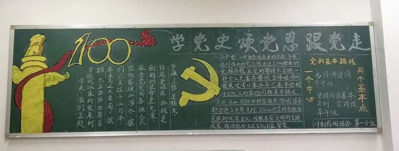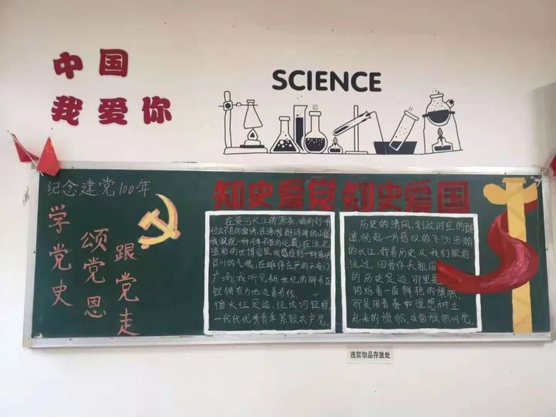 各班同学利用课后时间,发挥创造力和想象力,认真装扮教室,将党史的事故融入其中,营造良好的党史学习氛围。
