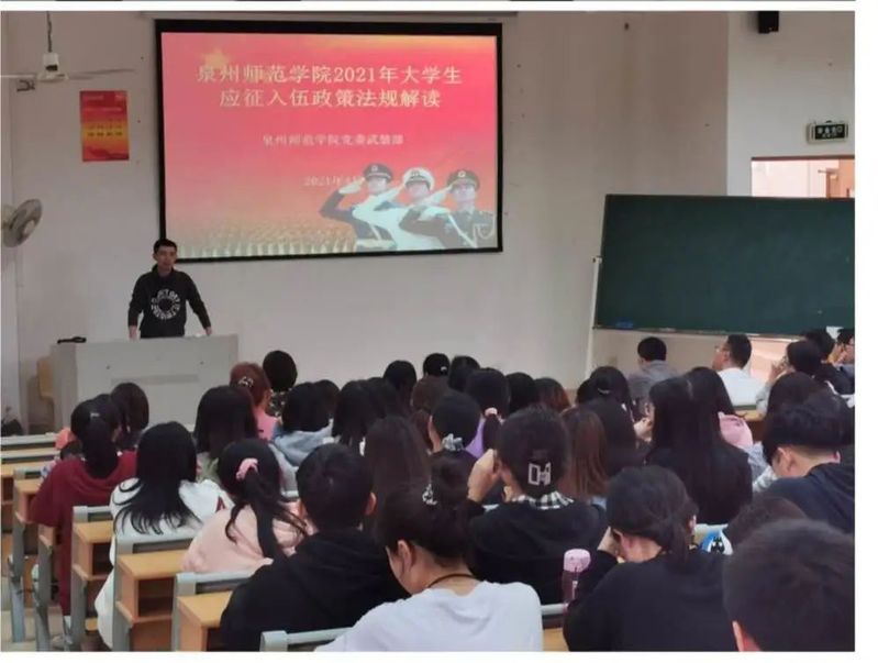 4月15日,我院邀请林强、陈斌峰、黄琼良、瞿晨等4名泉州市军转干部给20级各班开展国防教育暨大学生征兵入伍政策解读宣传会。