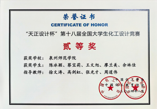 近年来,专业积极组织学生参加各级学科竞赛,已获得全国大学生化工HSE创新设计大赛一等奖,“互联网+化学反应工程”课程设计大赛二等奖等国家级奖项,并已连续10年获得全国大学生化工设计大赛国家级奖项。毕业生就业率均在96%以上,进入央企或行业龙头企业就职30余人。部分学生考取复旦大学、天津大学、北京化工大学、福州大学等高校研究生。