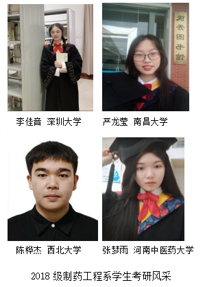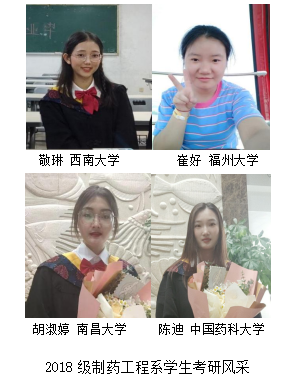5.专业方向:本专业毕业生可到制药工程或医药生物技术领域相关的生产企业、营销企业、科研院所、药品监督管理部门等企、事业单位从事药品生产、管理、营销、检验监督和研发或管理等工作。毕业生平均考研升学率达27 %,其中60 %以上学生考入“双一流”名校的相关专业继续深造。近三年一次就业率均超过96 %,45 %以上就职于知名医药企业单位和上市公司,8 %入职机关事业单位。