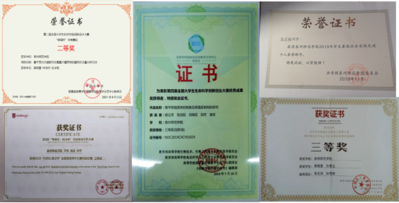 部分学生获奖证书