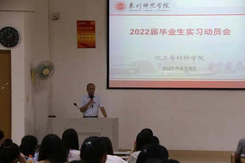 6月5日下午,化工与材料学院在理工319教室召开2022届毕业生实习动员会。学院院长袁俊生、党委副书记郑少君、副院长卓东贤出席会议。