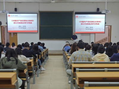 学习中,学院党委书记选取了新修订条款中14项与党员日常工作和生活紧密相连的内容做重点学习导读,做到立足原文,又结合现实案例,鲜活生动,通俗易懂。通过导读,引导师生党员既要全面深入学习整部《条例》,又要精准把握《条例》修订重点,做到知行合一,坚决贯彻执行,做到严于律己、实干担当。