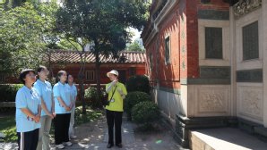 第三站晋江市五店市家风家训馆。实践队队员跟随着讲解员漫步在红砖古厝间,一同领略闽南建筑里一脉相承的家国情怀和廉洁家风。步入庄氏和蔡氏家庙,在匾额、楹联、大门、隔扇上的“忠孝廉节”“聚族梅山,一千余年来唯是青与白,不失故山气味;构祠吾市,半亩方宅中自为爽而恺,却忘近市尘嚣。”等廉洁家训,无不体现着庄氏和蔡氏家族祖先的家风训育,对后人廉洁守身的教导。再往状元街深处走,来到晋江市五店市家风家训馆,一幅幅写着“一以公廉勤俭,不得苛虐贪婪”“余子孙谨守此戒,勿贪利苟得”的家风家训牌匾、楹联和碑刻,历代先贤的家风家训背景故事、“修齐治平”的家国情怀以及勤政廉政家风家教文化,让实践队队员驻足深思,感悟廉洁家风家训的文化滋养。随后,大家还一同观看了“清风之路”微视频,体悟廉洁家风的传承脉络,深刻领会家族传承中的优良家风,接受廉洁文化洗礼。