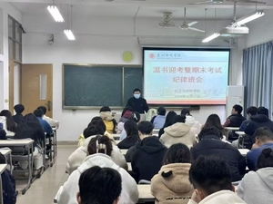 12月22日晚上,我院各班级在理工楼召开了2024年秋季学期期末考试温书迎考动员班会。通过此次班会,一方面向同学们强调了考试纪律,应自觉维护考试的公平正义,诚信考试,要尊重自己、尊重老师、尊重专业,要严守纪律、不碰红线,另一方面,积极引导同学们做好考前复习规划,要利用好学校的教学资源,课后积极主动找老师答疑解惑,力争在考场上取得好成绩。同时,积极引导同学关注考前的心理健康,克服紧张焦虑情绪,以良好的精神风貌迎考。