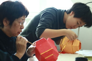 从纸板的裁剪到图案的刻画,再到各板块的拼接、裱糊,大家沉浸其中,感受到传统手工艺的精妙绝伦。
