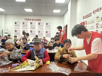 自制艾草锤手工体验让活动充满趣味。团支部成员介绍艾草的药用价值,讲解拍打“八虚” 的养生原理,并详细说明拍打方法。在成员的指导下,老人们亲手制作艾草锤,感受传统养生文化的魅力,现场气氛温馨融洽。