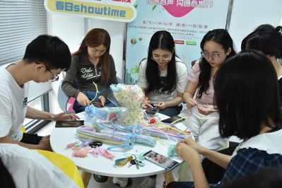活动现场,“心澜旋迹——扭扭棒”区域热闹非凡。同学们犹如灵动的艺术家,尽情挥洒着创意,将一根根色彩缤纷的扭扭棒巧妙编织,幻化成形态各异的精美物品。在这个过程中,他们全身心沉浸于艺术创作的奇妙乐趣里,压力也随着指尖的舞动悄然释放,尽情享受着自我表达所带来的纯粹愉悦。