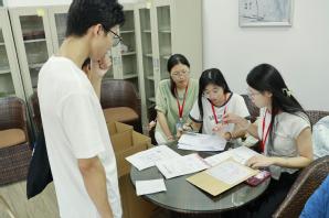 9月13日清晨,在学院迎新工作小组的带领下,迎新工作有条不紊的展开。早上7点多,2025级新生们陆续来到化工与材料学院报到大厅。副校长黄江昆带队走访我院迎新工作现场,看望前来报到的新生。在各系报到点,校领导与新生家长亲切交谈,了解新生报到及绿色通道办理情况。