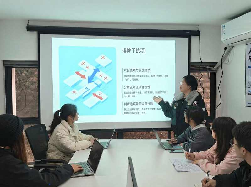 林子榆则聚焦于备考实战技巧,逐一讲解了词汇、阅读、翻译、写作与听力等部分的提升策略。在词汇记忆方面,她推荐了“不背单词”“奶酪单词”等实用工具,并建议结合软件科学规划每日学习任务;在阅读部分,她通过真题实例演示审题与解题顺序,总结了排除干扰项的有效方法;翻译与写作方面,她强调平时应积累高频表达与常用句型,并分享了翻译应急技巧与作文结构模板;听力训练则重点介绍了“精听三步法”及相关学习资源,帮助听力薄弱的同学找到提升方向。