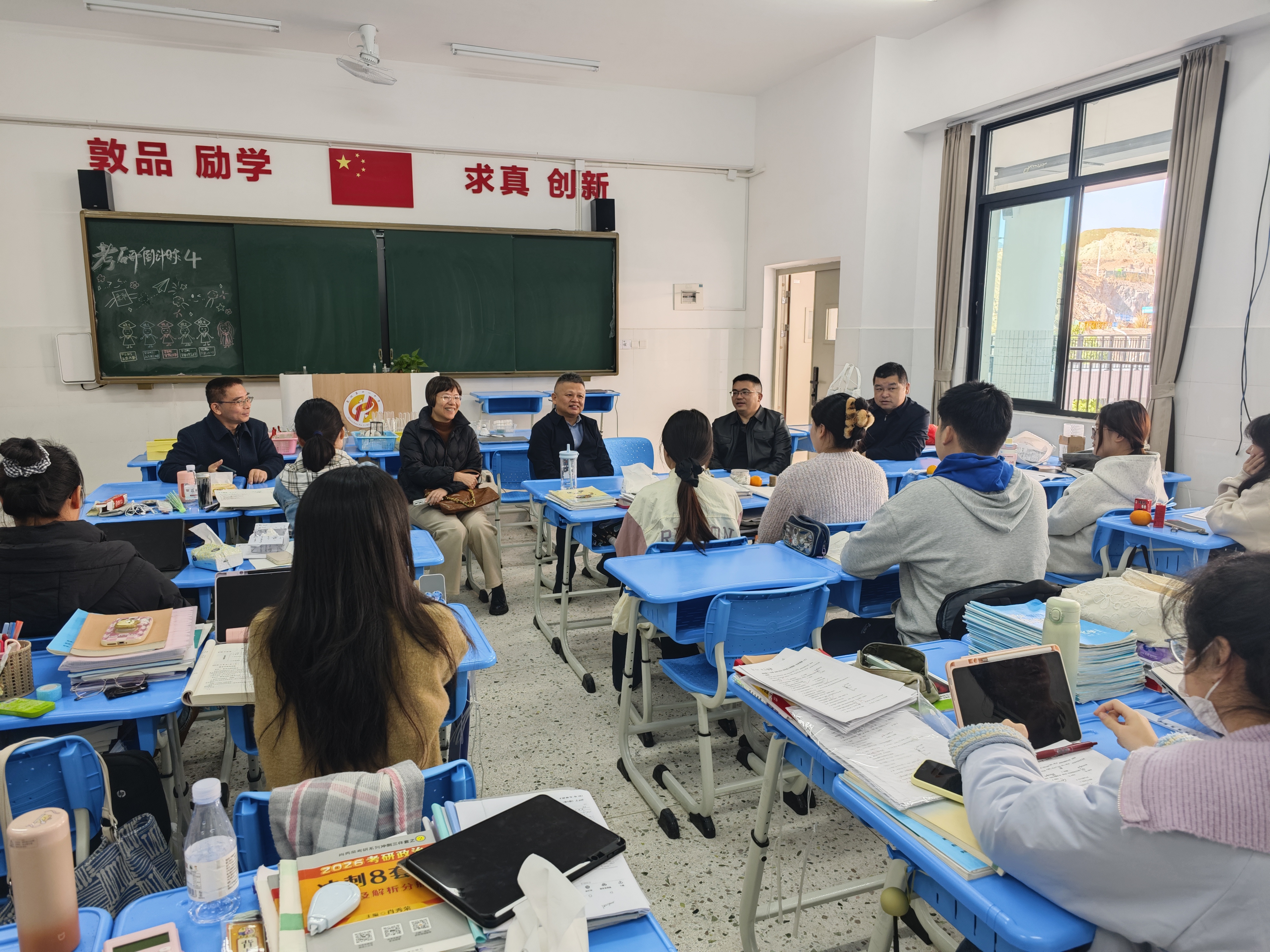 座谈上,吴清金书记详细询问了实习生们的生活、工作与教学情况,并对同学们的表现给予肯定。他叮嘱大家要珍惜实习机遇,虚心主动历练;要传承优良教风,常怀感恩之心;要严守安全规范,确保实习圆满。谢晓兰副院长则重点强调了实习任务与其他学业安排的统筹协调,指出教育实习是师范培养的关键环节,勉励同学们科学规划、知行并进,在教学中深化理解,在沟通中提升能力,为未来从教之路打下坚实基础。