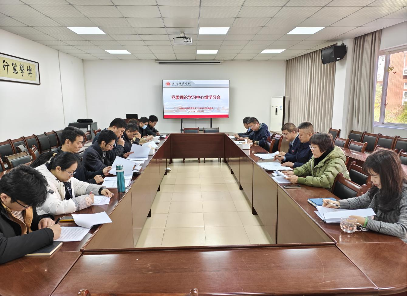 12月29日上午,化工与材料学院党委召开理论学习中心组学习会,专题学习习近平总书记在中共中央政治局第二十三次集体学习时的重要讲话精神。学院党委委员、各党支部书记、科室负责人参加学习,校党委巡听旁听工作4组组长、党委宣传部部长、教育科学学院党委书记陈一祥莅会。会议由学院党委书记吴清金主持。