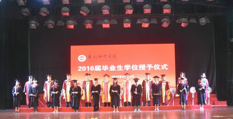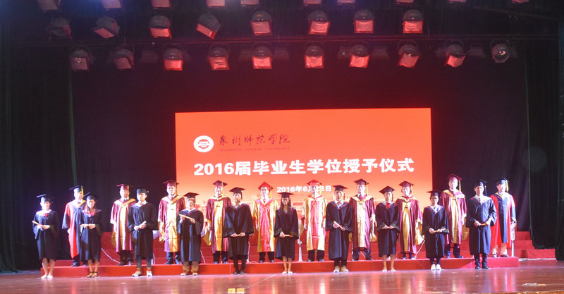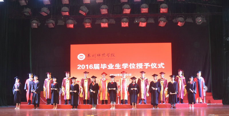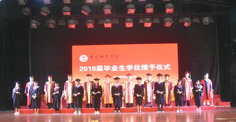 英国威廉希尔公司官网校领导为海洋与食品学院2016届毕业生拨正流苏并合影留念