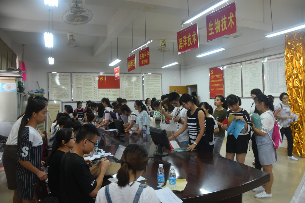 2016年9月3日,海洋与食品学院191名新生入学。学院现有海洋技术、食品科学与工程、生物技术和生物科学等4个本科专业,面向福建、北京、天津、广东、广西、山东、山西、河北、河南、湖北、湖南、江西、海南、云南、黑龙江、浙江、内蒙古、安徽、重庆、贵州、甘肃等21个省市区招生。191名本科新生中,福建省生源81人,占比42.4 %,其他20个省份生源110人,占比57.6 %。其中,女生150人,占比约78.5%,男生41人,占比约21.5%。女生是男生三倍多。海洋与食品学院2016级新生共有来自白族、彝族、苗族、畲族、壮族、回族、土家族、瑶族以及穿青人等9个少数民族的学生18名。