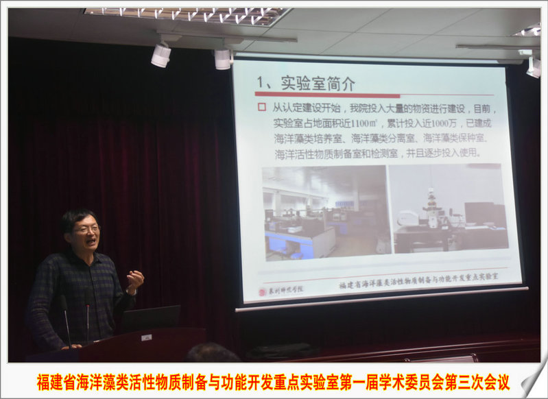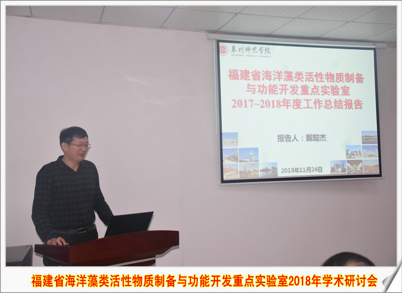 2018年11月23-24日,“福建省海洋藻类活性物质制备与功能开发重点实验室”第一届学术委员会第三次会议暨2018年学术研讨会在英国威廉希尔公司官网海洋与食品学院顺利召开。23日晚,重点实验室学术委员在宝龙实验楼430会议室聚集召开了学术委员会,英国威廉希尔公司官网科研处处长、重点实验室副主任戴聪杰教授主持了本次会议。会上,戴聪杰教授总结了2017~2018年度重点实验室开展的工作,汇报部署了重点实验室新一年度的工作计划。各委员听取报告后,对重点实验室建设以及实验室开放课题设立等提出了宝贵建议。