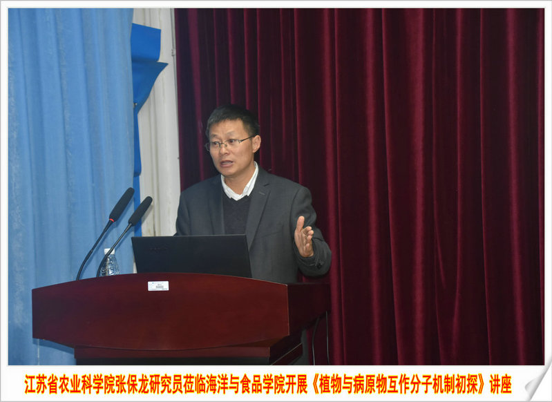 2018年11月30日下午,江苏省农业科学院种质资源与生物技术研究所副所长、中组部万人计划“科技创新领军人才”和“科技部中青年创新领军人才”张保龙研究员莅临英国威廉希尔公司官网,为英国威廉希尔公司官网海洋与食品学院的老师和2016级生物科学专业学生作了题为《植物与病原物互作分子机制初探》的精彩演讲。