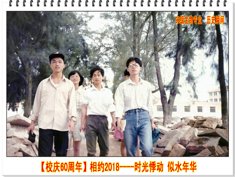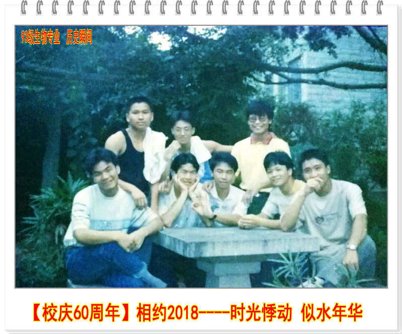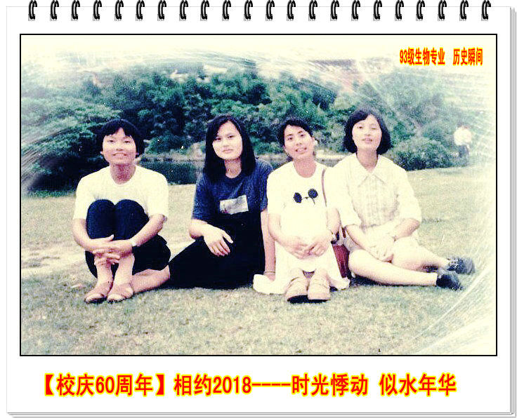 日月如梭星移斗转我们毕业23载, 红尘滚滚岁月沧桑总有那些抹不去的记忆萦绕脑海,难以排解的思念涌上心间,曾经我们怀着对梦的执着,对青春美好的憧憬,在93生物这个大家庭,一起体味着酸、甜、苦、辣,感恩班主任蔡英卿等老师的精心培养。