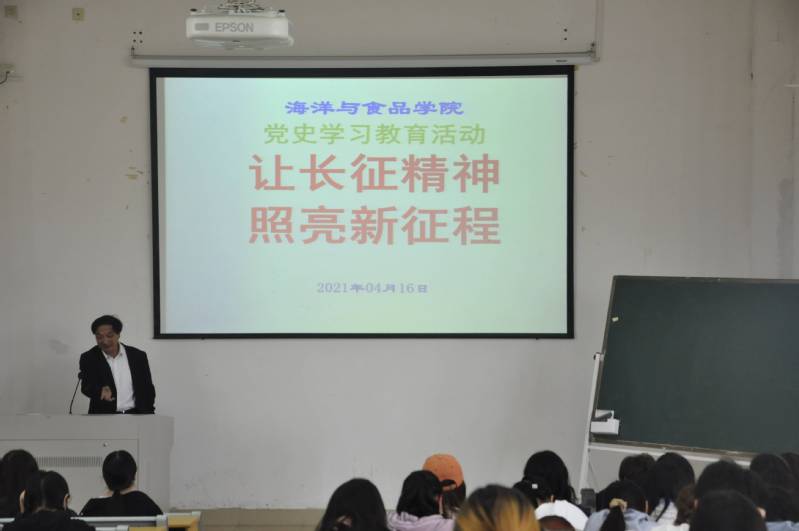 4月16日,海洋与食品学院在理工楼320开展“让长征精神照亮新征程”主题党史学习教育。活动由学院党委书记蔡英卿教授主持,全体学生骨干参加活动。