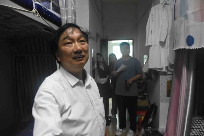 5月4日,海洋与食品学院党委书记蔡英卿教授在辅导员和学院自律会、学生会学生代表的陪同下走访学生宿舍。