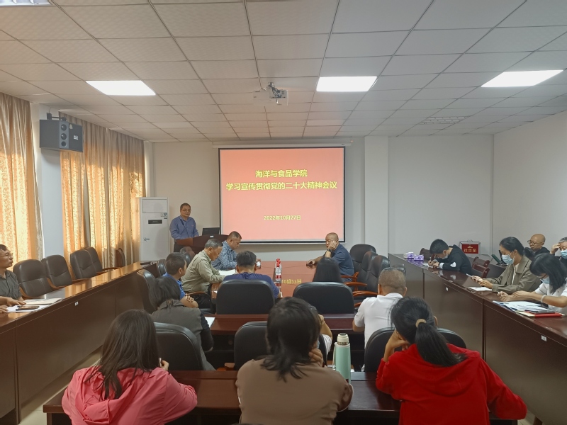 10月27日,海洋与食品学院召开学习宣传贯彻党的二十大精神会议,学院党政领导和全体教职工参加,会议由学院党委书记蔡志荣主持。