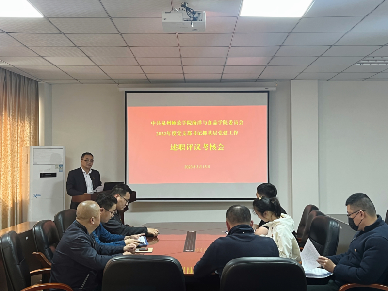 3月15日,海洋与食品学院党委在会议室召开2022年度党支部书记抓基层党建工作述职评议考核会。会议由党委书记蔡志荣主持,副书记刘礼元、党委委员、各党支部书记参加会议。