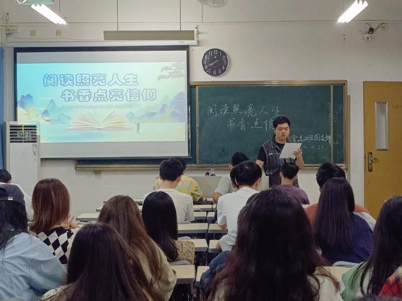 学院团委委员罗晨港以“书香致远,墨卷至恒”为题,向同学们介绍了“世界读书日”的由来、书籍材料的发展历史、名人的读书故事、高效阅读的方式等,并鼓励同学们踊跃发言,分享自己喜欢的书籍及读后感。她呼吁同学们深刻领悟阅读的独特魅力与深厚内涵,积极培养持之以恒的阅读习惯,在书海中汲取智慧的养分,为成长之路注入源源不断的活力。