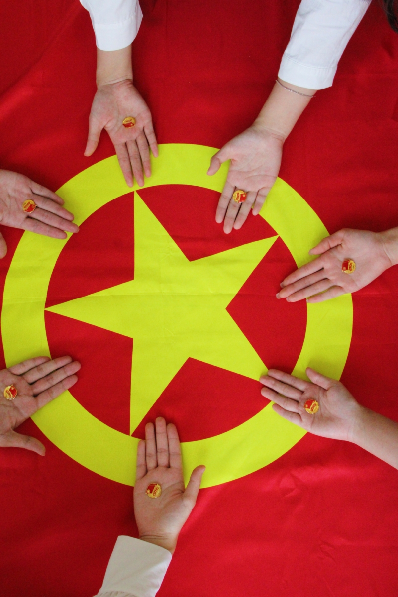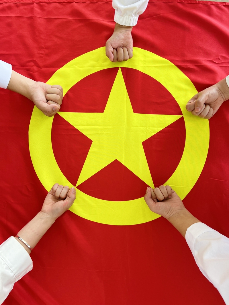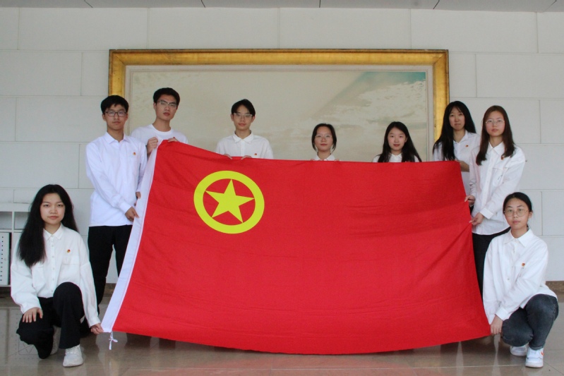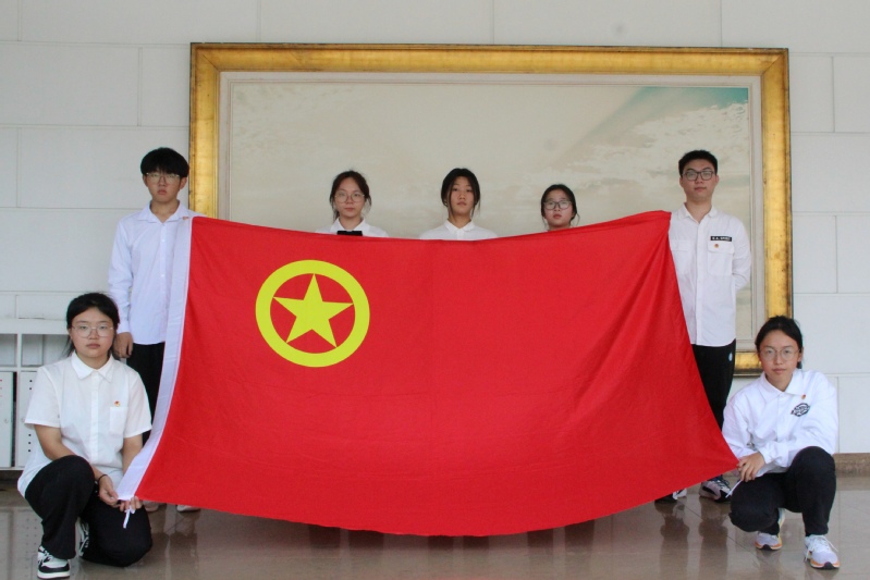 随后,“我与团旗团徽合影”环节更是将活动推向了新的高度。团旗在风中飘扬,团徽在阳光下闪耀,团员们纷纷与团旗团徽合影留念,用镜头记录下这一难忘的时刻。每一张照片都承载着青春的记忆,每一张笑脸都绽放着青春的活力,展现了海洋学子的青春风采和奋斗姿态。