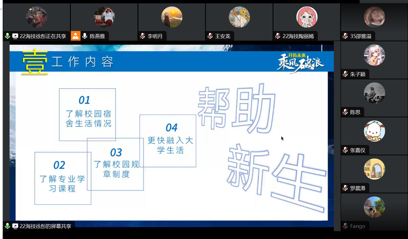 为确保2024级新生入学工作的顺利推进,明确工作导向,增强助班团队的协作力与凝聚力,7月28日,我院以线上腾讯会议的形式召开2024级新生助理班主任工作会议。学院全体辅导员及全体2024级新生助理班主任参会。会议由学院学生会陈燕雅同学主持。