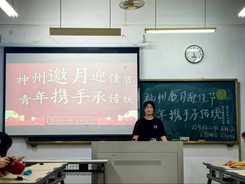 活动中,各团支部通过生动讲解与互动体验相结合的方式,带领同学们深入探索中秋佳节的起源、传统美食、风俗习惯等,让青年学子在知识的海洋中遨游,深刻感悟这一传统节日背后所蕴含的丰富文化底蕴和深厚情感价值。为了更加生动地展现中华优秀传统文化的魅力,各团支部还精心设计了猜灯谜、飞花传令、成语接龙等一系列趣味横生的游戏环节。同学们积极参与,在欢声笑语中体验传统文化的独特韵味,不仅增进了对传统文化的了解与热爱,更在互动中增进了彼此之间的友谊与默契。