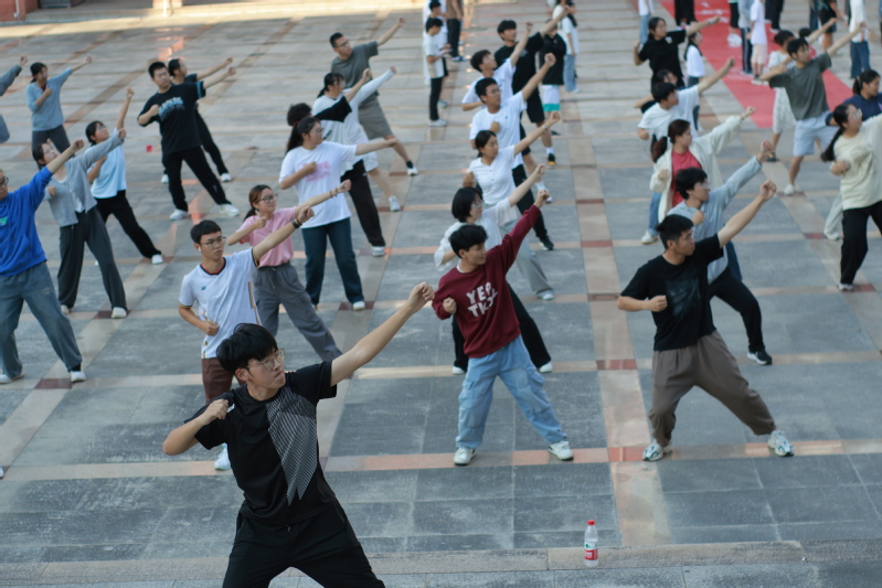 暖心陪伴。清晨的中山广场上,学长学姐们如同璀璨的星辰,照亮着排操队员们的前行之路。他们耐心指导,细心纠正,将宝贵的经验与智慧无私地传授给学弟学妹们。在学长学姐的引领下,队员们的动作愈发规范,团队默契度也悄然提升。