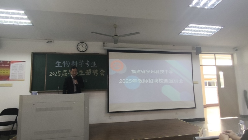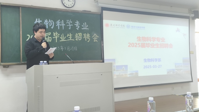 为进一步促进学院2025届生物科学专业毕业生高质量就业,搭建毕业生与用人单位的沟通桥梁,3月27日下午,海洋与食品学院生物科学专业2025届毕业生招聘会在荣茂301举办。本次招聘会邀请了泉州科技中学、南安市本真高级中学、泉州实验中学、福清京师学校、智学堂教育等五所学校前来开展招聘宣讲,吸引了众多毕业生踊跃参与。学院党委书记蔡志荣、生物科学系主任陈细香参加招聘会,并与招聘宣讲单位进行了深入交流。宣讲会由学院辅导员安毅主持。