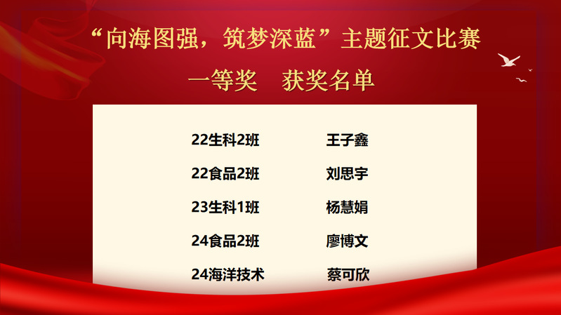 在第30个世界读书日到来之际,我院成功举办“向海图强,筑梦深蓝”主题征文活动。