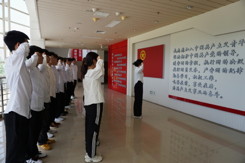 紧接着,学院隆重举行2025年新团员入团宣誓仪式暨老团员重温入团誓词仪式。全体团员整齐列队,身姿挺拔,右手紧握成拳,面向鲜红的团旗庄严宣誓。“我志愿加入中国共产主义青年团……”字字铿锵的誓言在校园上空久久回荡,这不仅是对共青团组织的庄严承诺,更彰显了团员们矢志不渝的坚定信念与勇担使命的责任担当。