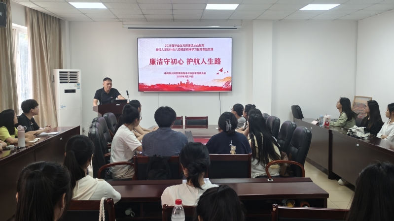5月21日,学院党委副书记、纪委书记刘礼元在学院449会议室为2025届毕业生党员讲授“廉洁守初心,护航人生路”专题党课。学院2025届毕业生全体党员参加本次党课。