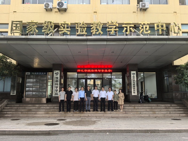 在青岛大学,生命科学学院党委书记孙建华、院长孙海新对学院一行人的到访表示热烈欢迎。团队深入学习了该校在科研团队建设、本科生培养模式、学科交叉融合等方面的经验做法。青岛大学整合多学科资源,在海洋与食品领域打造了多学科协同创新平台,推动了专业建设的创新发展。特别是该校施行的科研型、教学型、科研教学型分类培养模式,可以充分发挥每个教师的优势,提高教学质量和科研产出。此外,本科生“创新班” 模式,以参加省级及以上创新项目作为毕业要求,有效提升了学生的科研素养、实践能力与创新能力。最后,双方就如何打破学科壁垒、促进海洋科学与生物技术、生物与医药等多学科深度交叉融合进行了深入交流,并探讨了在教学资源共建共享方面的合作机会。