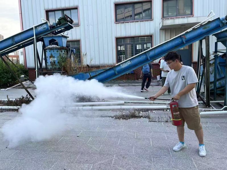 为切实增强新生消防安全意识与应急处置能力,筑牢校园安全防线,10月10日下午,海洋与食品学院在物信实验基地与明德体育馆中间路段组织全体2025级新生开展灭火器实操培训。