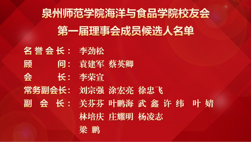 学院党委副书记刘礼元宣读第一届理事会、监事会成员候选人名单。经现场表决,候选人名单获全票通过,88级生物专业校友李荣宣当选为第一届校友会会长。