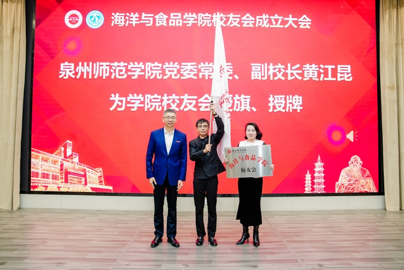 大会举行授旗授牌仪式。校党委常委、副校长黄江昆为海洋与食品学院校友会授旗、授牌。