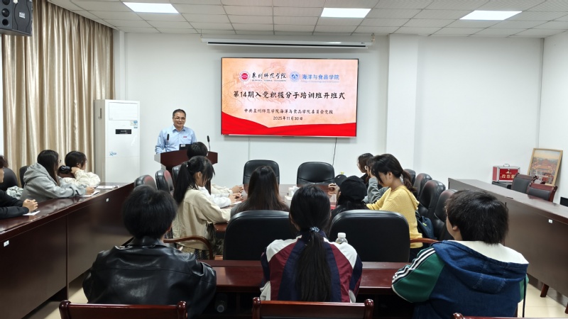 11月30日,海洋与食品学院党委在学院会议室举办第14期入党积极分子培训班,学院党委书记蔡志荣出席开班式并致辞,学院16名入党积极分子参加,开班式由学院党委组织员安毅主持。