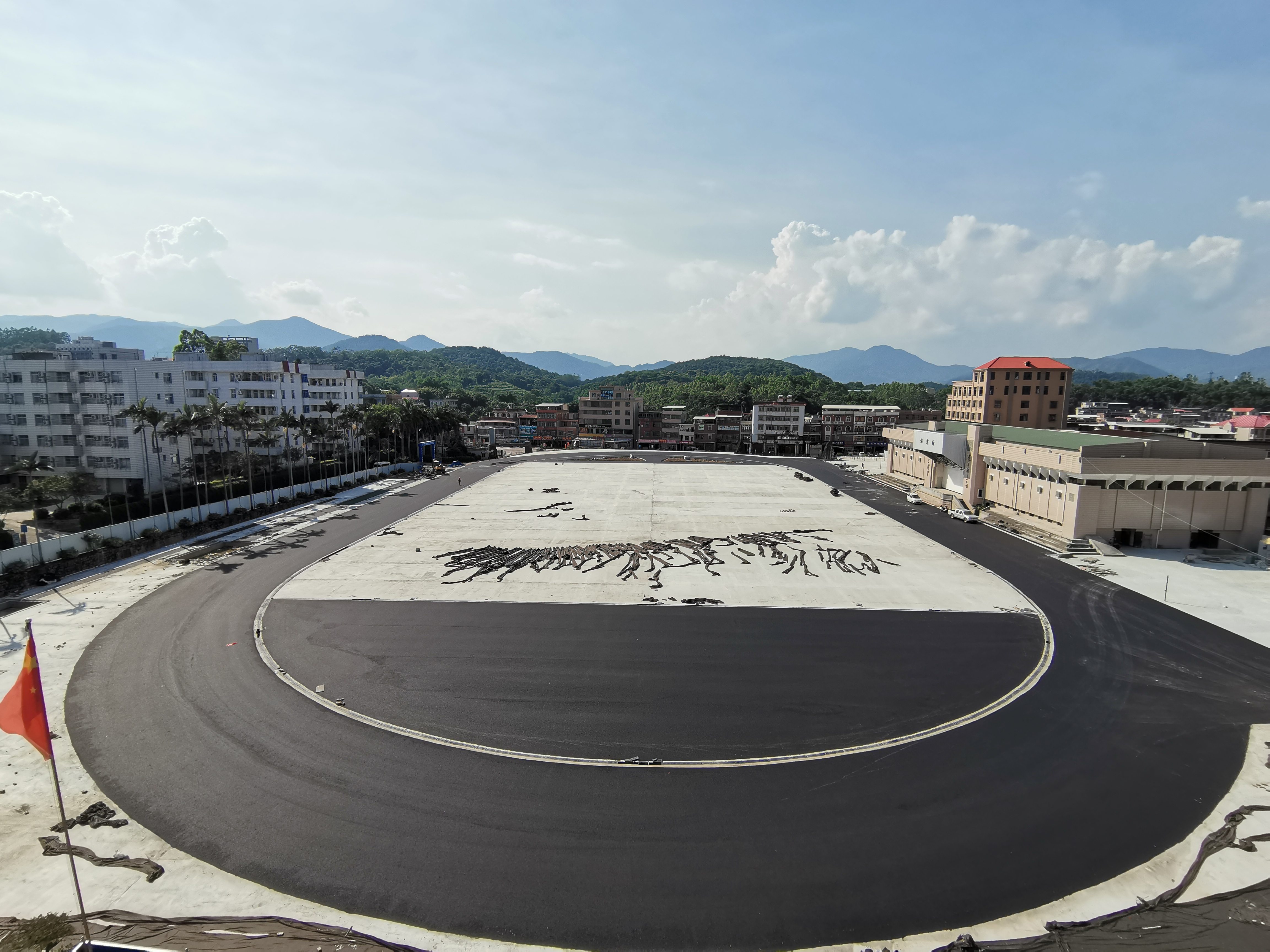 2023年7月14日,南安田径运动场改建项目完成跑道区,半圆区沥青摊铺工作。