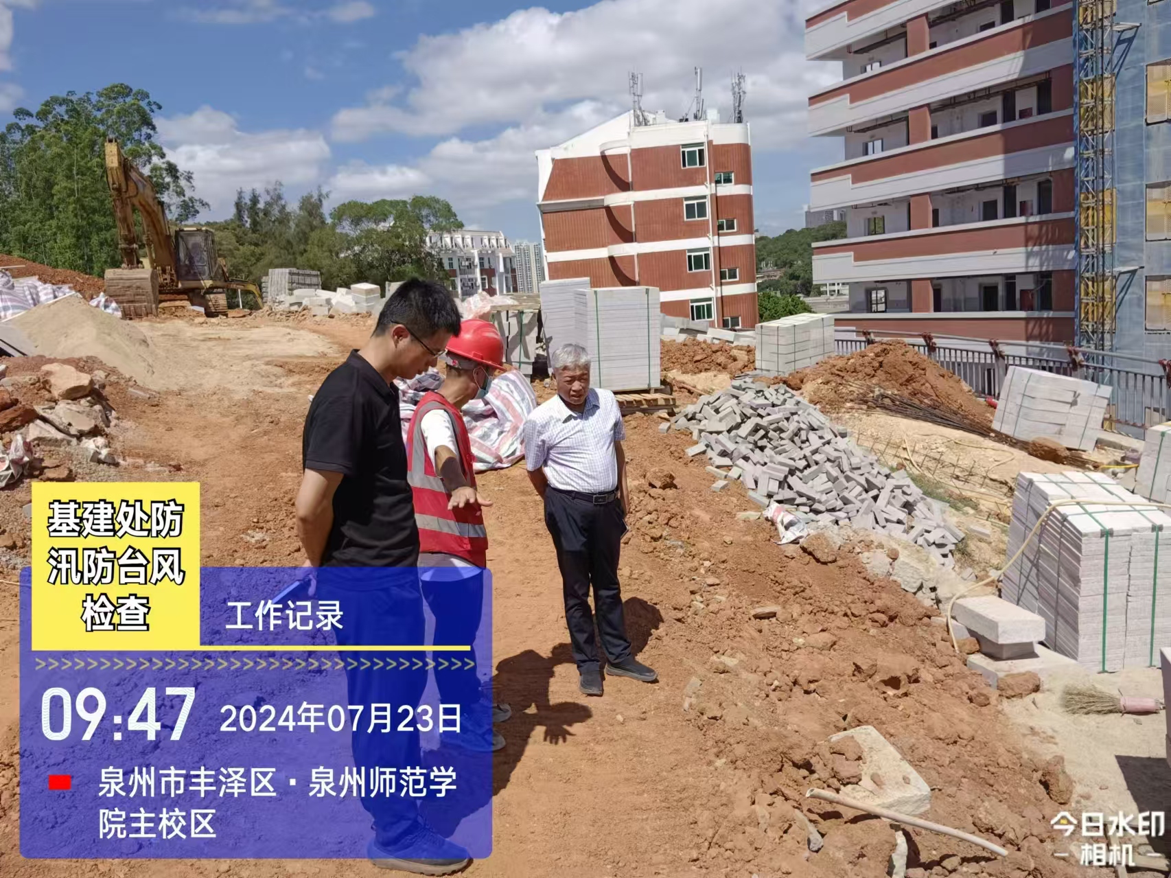 为做好防汛防台准备及应急工作,7月23日基建处开展在建工地防汛防台专项检查工作,基建处处长谢继存、副处长黄国川、在建项目建设、监理、施工单位相关负责人参与检查。