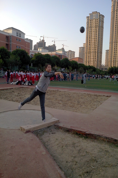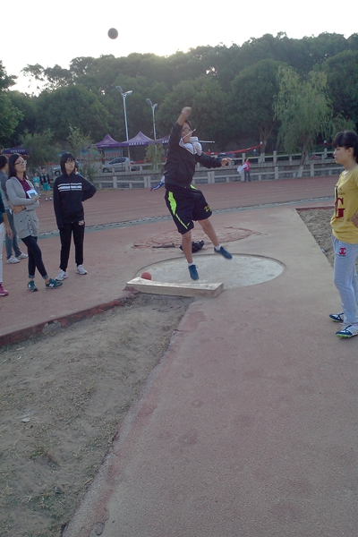教育科学学院运动员在操场进行铅球训练