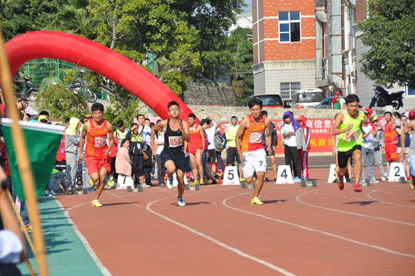 赛前,只见程天龙身着一套黑色运动服在第七跑道上做着压腿、小步跑等热身动作。当裁判下达预备口令时,他调整好姿势,紧绷的肌肉好似能瞬间爆发无穷力量。一声枪响,他像一匹脱缰的野马冲向终点。在拉拉队的加油声中,他奋起直追,最终以第六名的好成绩结束了本场比赛。