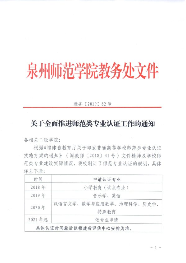 关于全面推进师范类专业认证工作的通知(教务2019-82号)