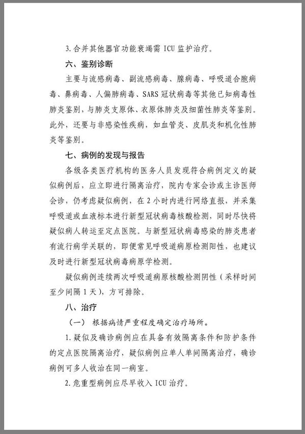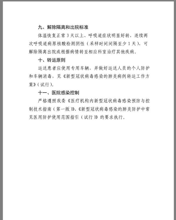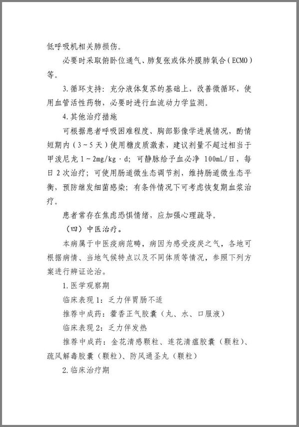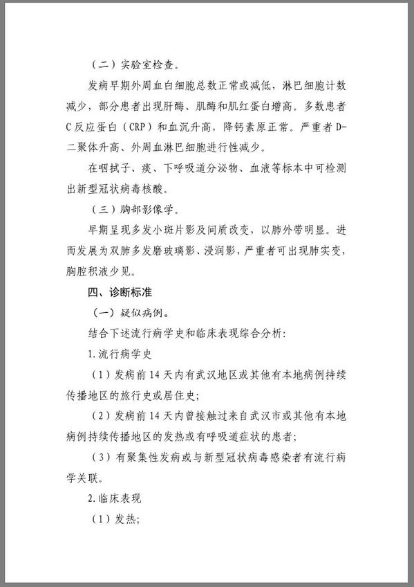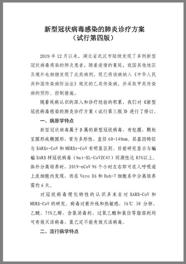 《新型冠状病毒感染的肺炎诊疗方案(试行第四版)》